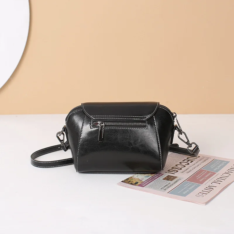 Petit sac bandoulière en cuir de vachette ciré à l'huile pour femme, idéal pour téléphone portable